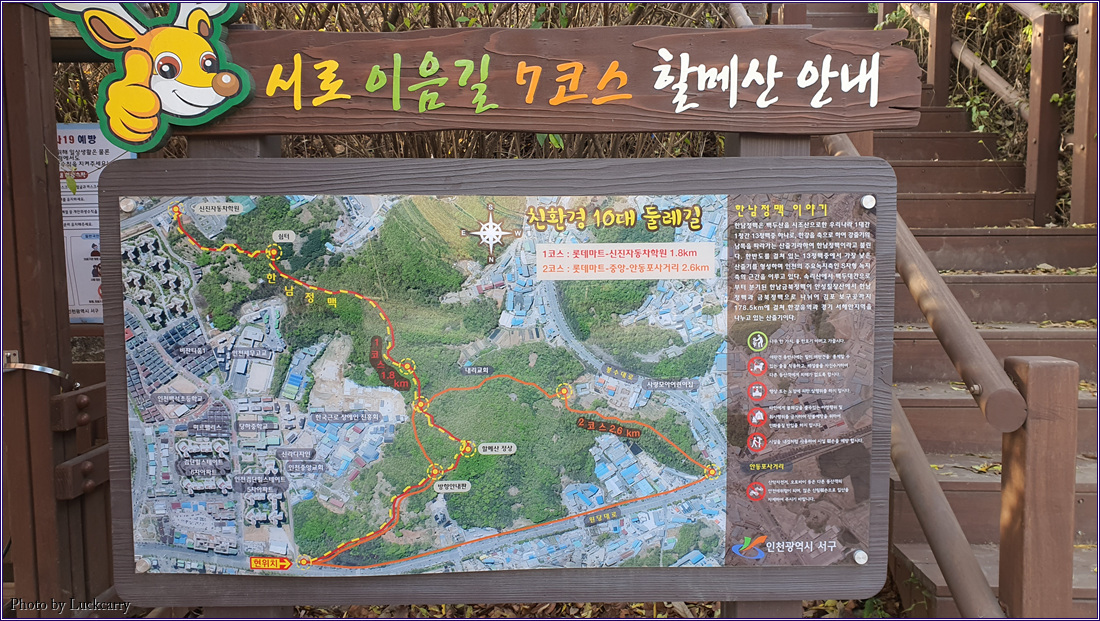 산행 코스 : 아루마루 (경인아라뱃길) → 할매산 → 검단 도심지역 → 가현산 → 상주산 → 수안산 → 대곶 사거리